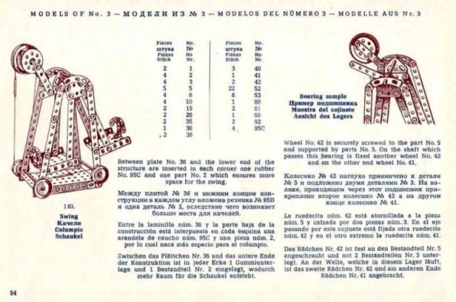 Součástí balení je velká, 94stránková návodová knížka ve stylu 30. let, koncipovaná pro sady MERKUR Classic C03, C04 a C05. Sestavíte až 141 různých modelů – od vozidel a strojů až po technické mechanismy. Ideální dárek pro kreativní děti od 8 let, technické nadšence i milovníky retro designu.