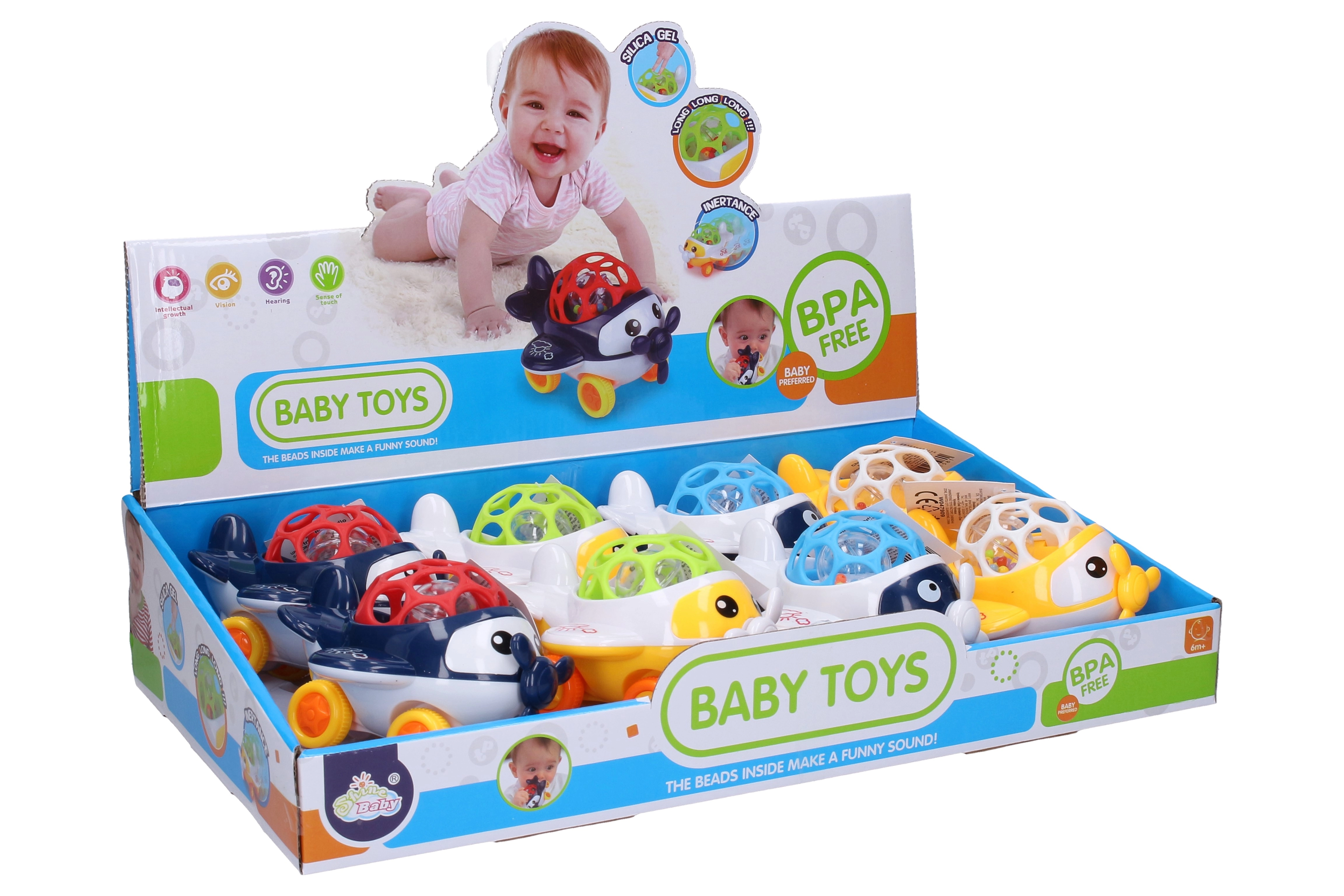 Hrací hračka ve tvaru letadla s volnými koly je perfektní pro zábavu a rozvoj dětí. Tato chrastítka jsou dostupná ve čtyřech variantách barev: modrá, zelená, bílá a červená. Díky svojí velikosti 11x11x8 cm je snadné pro děti ji uchopit a manipulovat s ní.