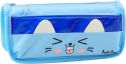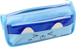 Dvoukomorový penál s motivem kočky modrý 22 cm