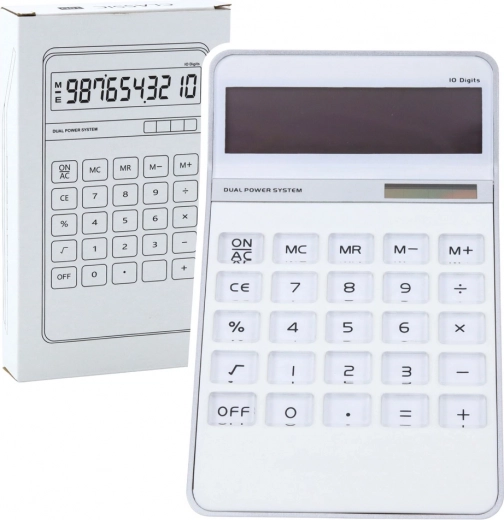 Moderní kancelářská kalkulačka v elegantním bílém krytu kombinuje estetiku a funkcionalitu. Její minimalistický design a výrazně označená tlačítka ji činí dokonalou na každém stole – v kanceláři, doma nebo ve vzdělávacích prostorech.