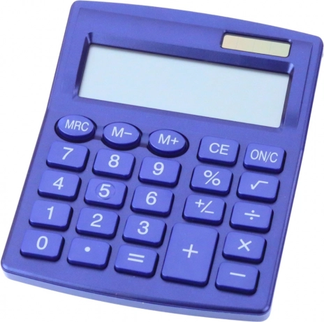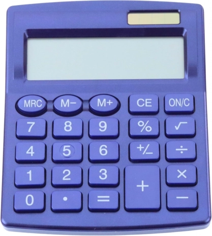 Modrá kancelářská kalkulačka s LCD displejem a solárním napájením. Ideální pro kancelář, školu i domov.