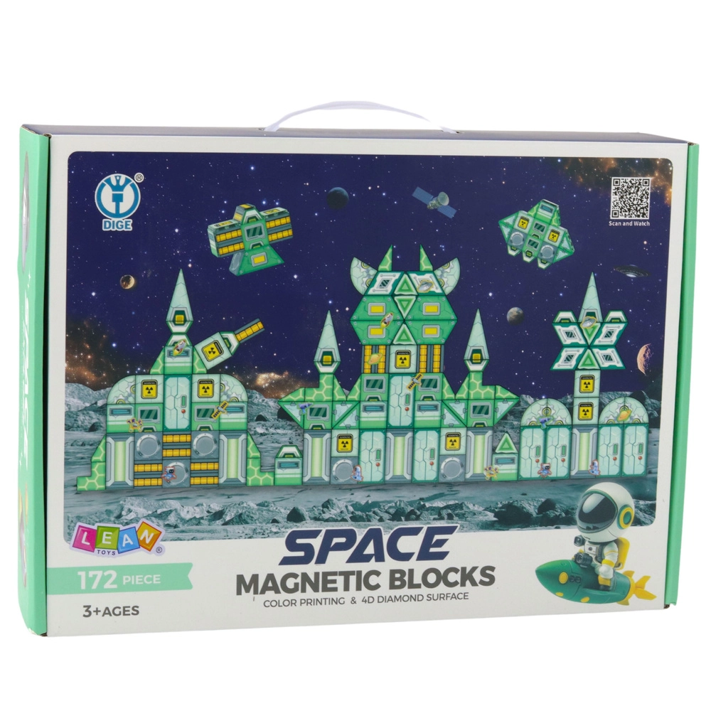Magnetické stavebnice Kosmos umožňují dětem kreativitní hraní inspirované tématem vesmíru. Díky modernímu designu a barevnosti, spolu s grafickými prvky, je každá skládanka jedinečná. Tato sada obsahuje až 172 různých dílků, které zahrnují trojúhelníky, čtverce, kosočtverce, 3D panely a dekorativní dlaždice s grafikou.