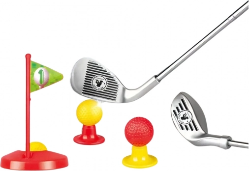 Tato dětská golfová sada je ideální pro různé druhy her a soutěží. Obsahuje tři různé golfové hole, tři barevné míčky (bílá, červená, žlutá), dvě základny a dva jamky s praporky. Realistický vzhled a kvalitní zpracování poskytují dětem pocit, že jsou skutečnými golfisty. Sada je vhodná pro děti od 3 let. Může být použita při hře osamotě nebo ve hře s vrstevníky, čímž učí zdravé soutěživosti.