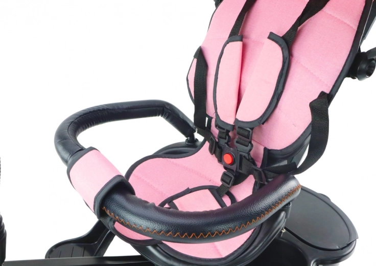 Multifunkční růžová trikolka PRO550 pro děti, která roste s věkem a zajišťuje pohodlí a bezpečnost.