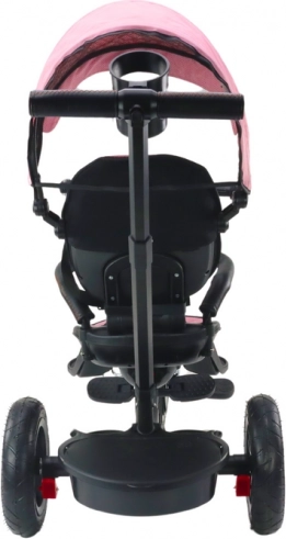 Trikolka PRO550 je všestranná hračka, kterou lze přizpůsobit rostoucímu dítěti, což eliminuje potřebu nákupu nového vybavení. Jak dítě roste, lze odejmout vodicí tyč a umožnit mu samostatnou jízdu. Kvalitní nafukovací kola zajišťují pohodlnou jízdu a bezpečnostní pásy s pětibodovým systémem spolu se zámkem zadních kol zvyšují bezpečnost během jízdy.