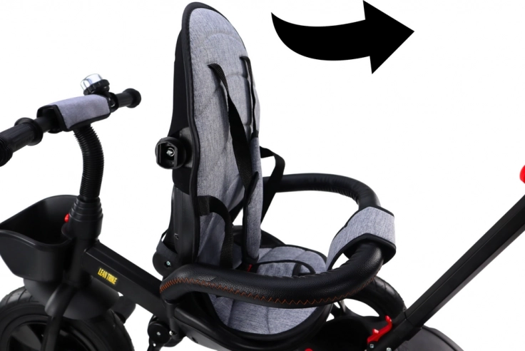 Tříkolka je vybavena pohodlným sedadlem s bezpečnostními pásy a možností otočné sedačky, což zajišťuje bezpečné a pohodlné sezení pro vaše dítě.