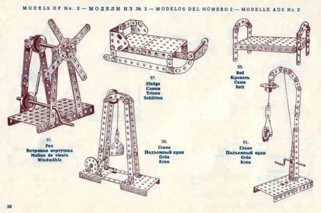 Součástí je velká, dobově stylizovaná návodová knížka o 94 stranách s obrázkovými postupy. Návody jsou doplněny původními texty v angličtině, němčině, španělštině a ruštině a jsou koncipované pro stavebnice MERKUR classic C03, C04 a C05.