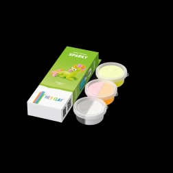 - 3 kelímky barevné modelíny pro postavičku Sparky