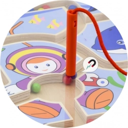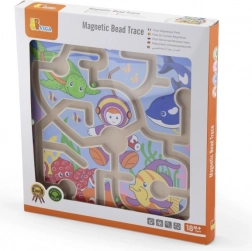 Dopřejte dětem chytrou zábavu s dřevěným magnetickým labyrintem, který rozvíjí jejich dovednosti přirozenou a hravou formou. Pomocí magnetické tyčinky děti vedou barevné kuličky spletitými cestami, trénují úchop, soustředění a koordinaci oko–ruka. Díky bezpečně uzavřené konstrukci se kuličky neztratí a hra je ideální i na cesty.