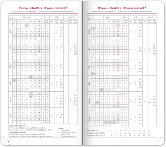 - Týdenní rozvrh - Obsahuje česko-slovenské kalendárium a doplňkově angličtinu, němčinu, maďarštinu a ruštinu.