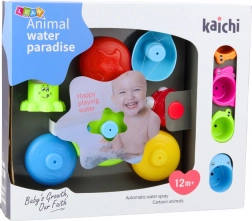 Pomocí herních prvků se rozvíjí koordinace oko-ruka, manuální dovednosti a přirozené pochopení příčinných souvislostí. Barevné a měkké figurky v tvarech sympatických zvířátek jsou ideálně přizpůsobeny malým dětským rukám, což umožňuje jejich snadnou manipulaci a možnost přelévání vody mimo samotnou fontánu.