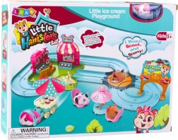 V této sestavě nechybí různé doplňky jako stůl se slunečníkem, zmrzlinové dezerty nebo vozík pro přepravu dobrot. Dítě může pozorovat, jak křeček jako číšník nebo doručovatel přináší zákazníkům zmrzlinu nebo se volně pohybuje po dráze podle vlastních tras. Všechny prvky byly zpracovány s důrazem na detaily, a měkký kožešinový povrch křečka vybízí k interakci.