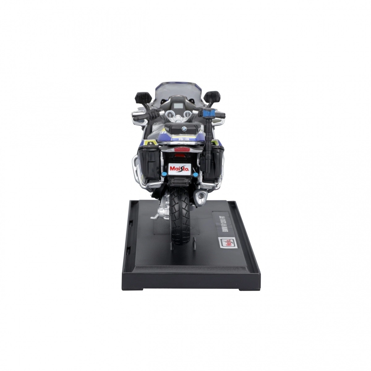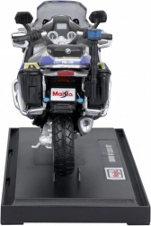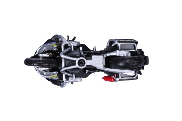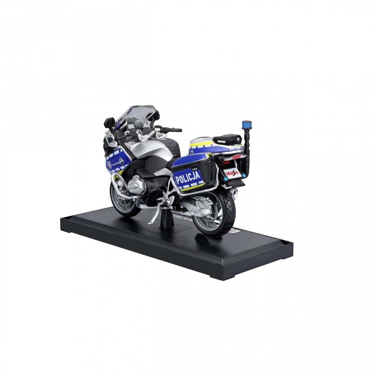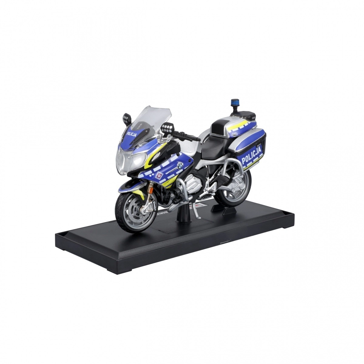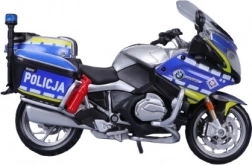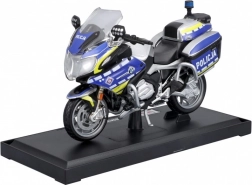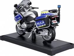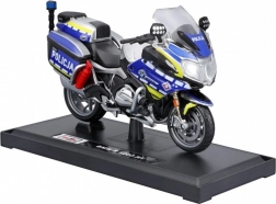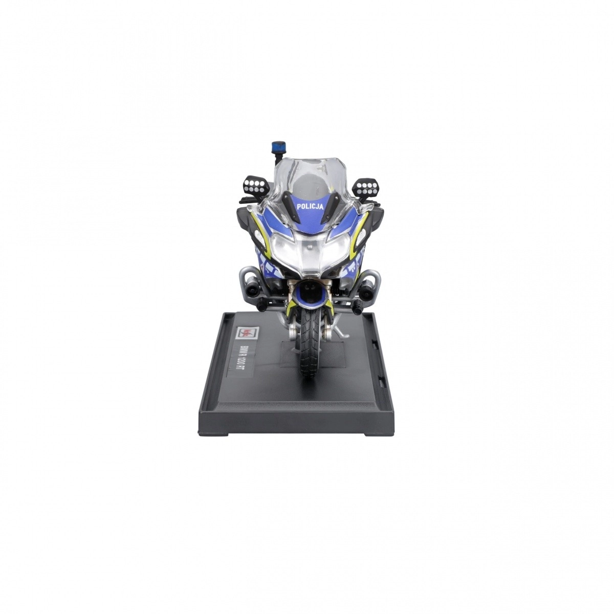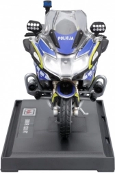 Tento kovový model motocyklu polské policie je věrně zpracovaný v měřítku 1:18 s velkou péčí o detaily a pohyblivým zavěšením. Model se může stát bez základny díky výsuvné nožce.