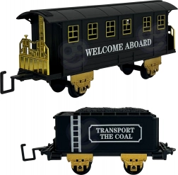 Součástí jsou dva detailně zpracované vozy – uhlový a osobní. Snadno se zapojují a jezdí hladce po trati.