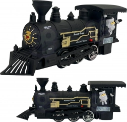 Lokomotiva se svítícím reflektorem a autentickými zvuky parního vlaku vytváří poutavou atmosféru a vtáhne děti do hry.