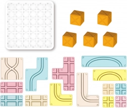 - 20 prvků (1 deska, 6 kostek, 12 trasovacích prvků)