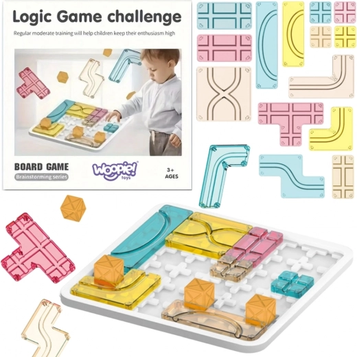 Objevte svět logických výzev s Kreativní deskovou hrou od značky Woopie. Tato inovativní skládačka spojuje zábavu s rozvojem důležitých dovedností díky různorodým, transparentním geometrickým prvkům a nápaditým kostkám.