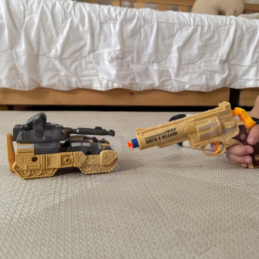 - 3v1 zábava: robot, tank a střelba pěnovými šipkami v jednom balení.
