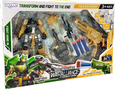 Vstupte do světa akce s hravým setem Woopie 3v1: transformující robot a tank doplněný o pistol na měkké pěnové šipky. Díky pohyblivým částem, snadné transformaci a bezpečným projektilům si děti užijí hodiny kreativní zábavy a napínavých scénářů. Ideální pro malé stratégy od 3 let.