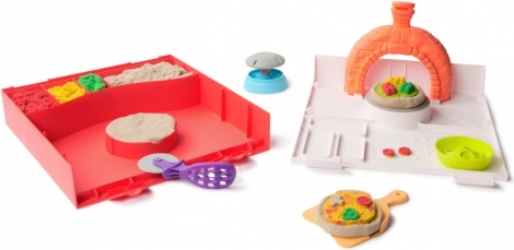 Se sadou SquishPizza děti připraví dokonalou „pizzérii“ přímo u stolu. Z kinetického písku vytvarují těsto, vytlačí přísady jako salám, zeleninu či jahody a poté pizzu stlačí do formy, kde zábavně „kyne“ – jako ta opravdová. Díky bohaté výbavě nástrojů je hra snadná, čistá a nekonečně kreativní.