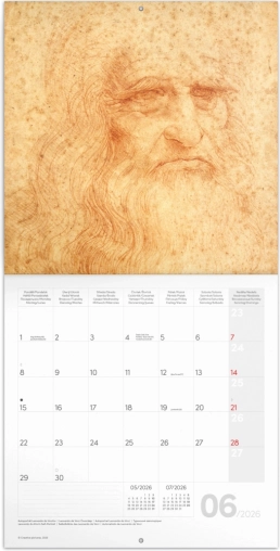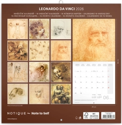 Objevte praktický poznámkový kalendář s dvanácti obrazy Leonarda da Vinciho. Přehledné kalendárium, měsíční fáze a prostor pro poznámky dělají z tohoto kalendáře ideální pomůcku pro váš rok.