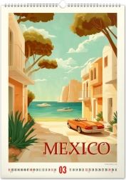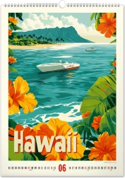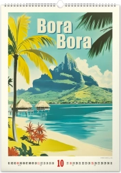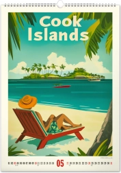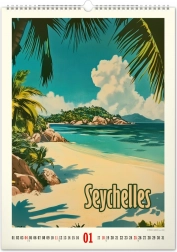 Nastavte si část tropického ráje ve svém prostoru s nástěnným kalendářem inspirovaným vintage plakáty. Obsahuje:
