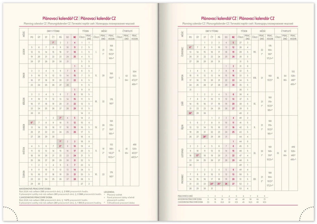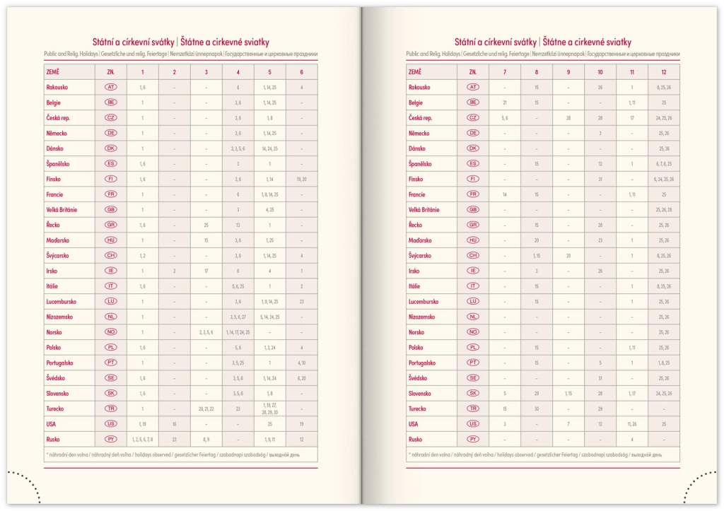 - Pracovní plánovací kalendář a seznam svátků v České a Slovenské republice