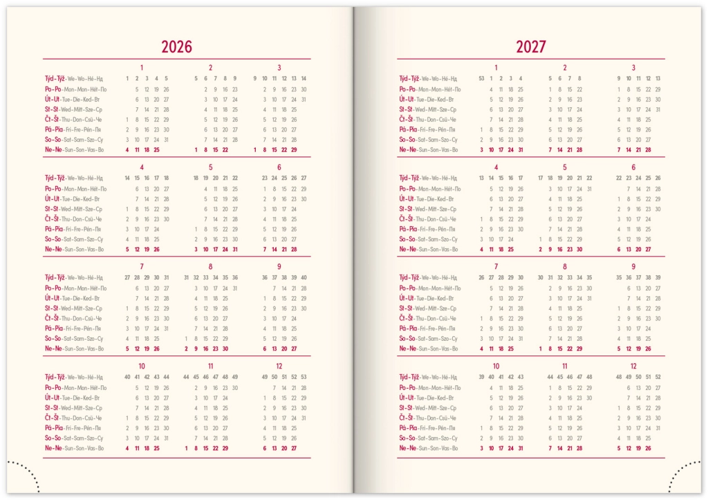 Udržujte si organizovaný a efektivní denní plán díky našem týdennímu diáři Rivoli pro rok 2026. Tento elegantní diář nabízí: