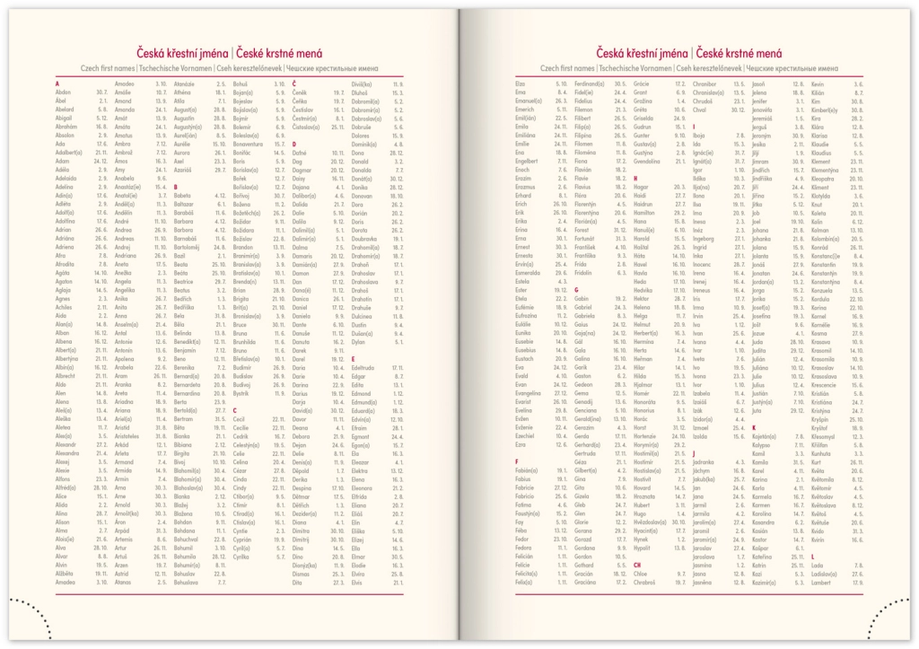 - Obsahuje dále rozšířený seznam českých jmen a mapu ČR a SR