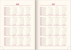 - Obsahuje měsíční a roční plánovací kalendář pro roky 2026 a 2027.