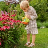 Uzavíratelná nádobka brání rozlití, pevné madlo usnadňuje přenášení a kvalitní materiály vydrží dětské nadšení.