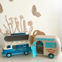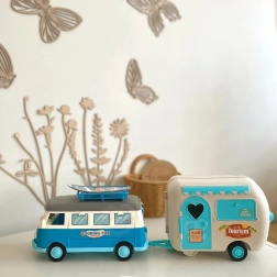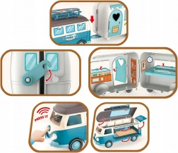 Objevte svět úžasných dobrodružství s výjimečným karavanem s přívěsem od značky Woopie! Tato pestrobarevná hračka ve stylu retro je ideální pro malé objevitele, kteří milují kreativní hry. Karavan s přívěsem má otevírací prvky, realistický interiér a světelné a zvukové efekty, které učiní každou cestu nezapomenutelnou.