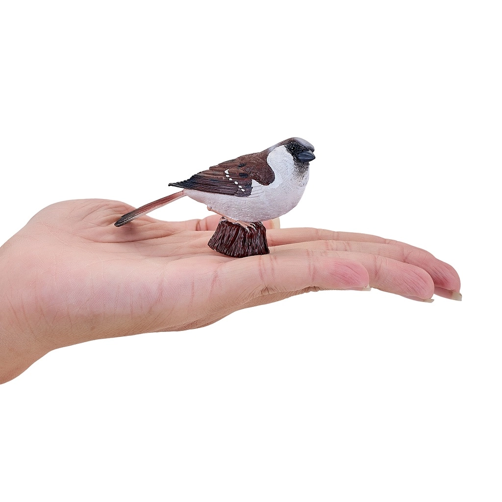 Tato precizně zpracovaná figurka vrabce věrně napodobuje vzhled skutečného ptáka – od jemného peří až po přirozené zbarvení. Ruční malba podtrhuje realistický dojem a dělá z ní atraktivní doplněk pro malé objevitele, rodiče i nadšené sběratele.