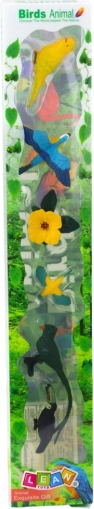 Sada obsahuje papouška ara, papouška vlnkovaného, tukana, kolibříka a ptáka rajského.