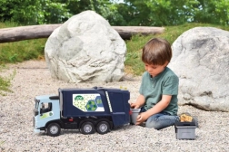 Robustní popelářské auto VOLVO od značky Lena Worxx je detailně zpracovaná hračka z odolného plastu pro hru doma i venku. Nabízí plně funkční mechanismus s pohyblivou korbou, otevíratelným zadním víkem a pojistkou proti nežádoucímu vyklopení. Součástí jsou dvě popelnice pro realistickou hru, která podporuje představivost a jemnou motoriku dětí.