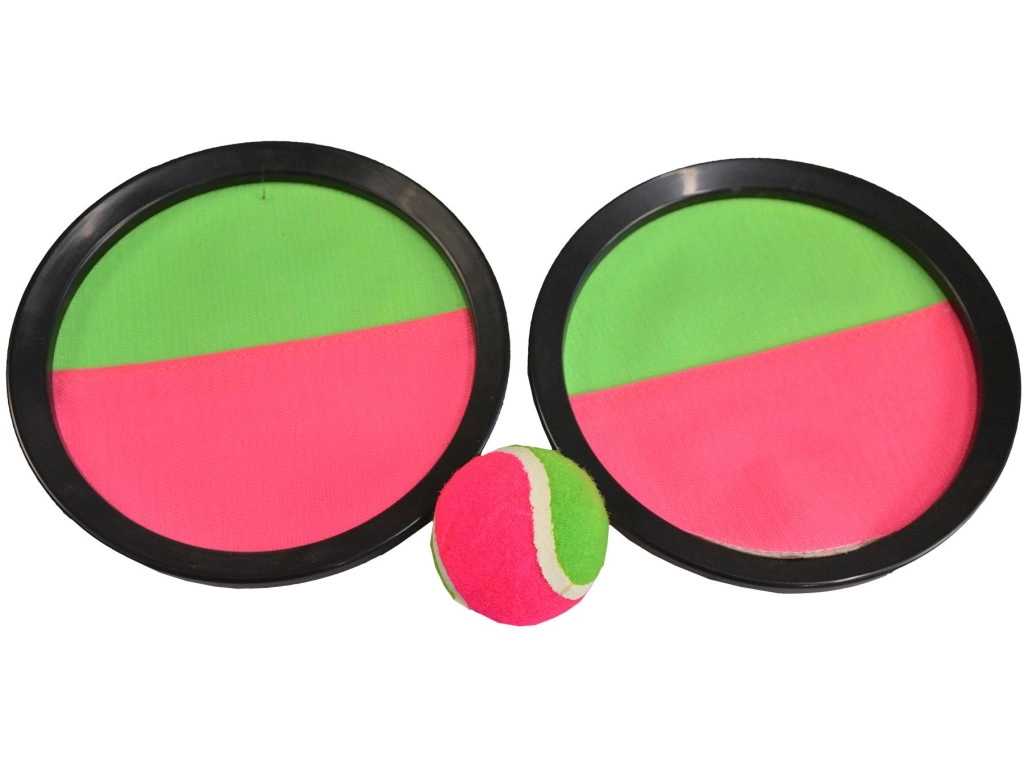Užijte si zábavné hodiny venkovní hry s Catch Ball. Tato hra je skvělá pro pobavení jak v létě u vody, tak v zimě během příjemného dne venku. Obsahuje dva plastové talíře s povrchem ze suchého zipu a míček, který se na talíř jemně přichycuje. Stačí, když jeden hráč míček hodí a druhý ho pomocí talíře chytí.