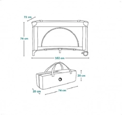 Postýlka je ideální pro menší prostory a díky rychlému skládání je její použití snadné a rychlé. Nabízí možnost nastavení matrace do dvou výškových úrovní, což zajišťuje flexibilitu. Díky bočnímu východu na zip je vstup a výstup pro dítě jednoduchý.