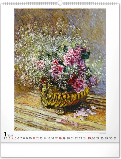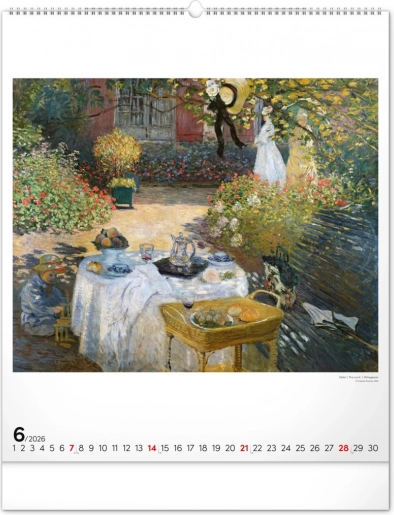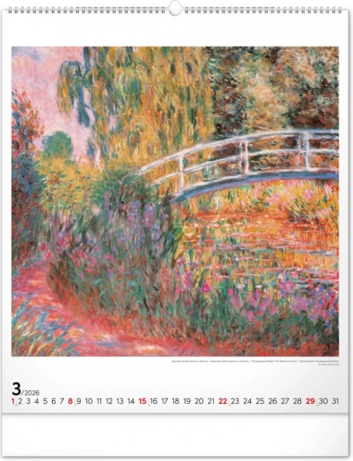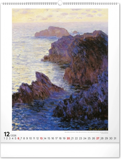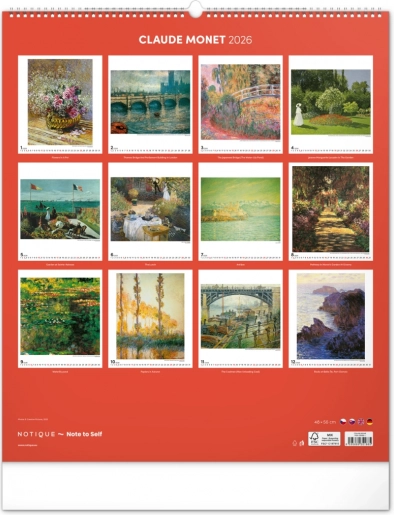 Nástěnný kalendář s jedinečnými díly Clauda Moneta přináší do vašeho domova kouzlo impresionismu. S vynikající kvalitou tisku a velkým formátem je ideální pro milovníky umění.