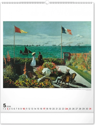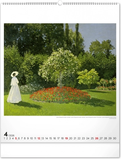 Pokud obdivujete díla Clauda Moneta, tento nástěnný kalendář je přímo pro vás. Každý měsíc přináší nový obraz z jeho bohaté galerie plné svěží krajinné scenérie a postav.