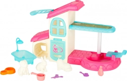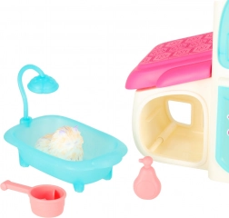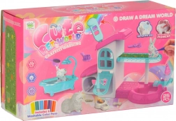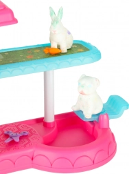 Tento jedinečný zvířecí domeček nabízí interaktivní SPA salon s bazénkem a sprchou, který je ideální pro péči o malé figurky zvířátek, jako je pejsek, kočička nebo králíček. Dále obsahuje šest barevných fixů pro kreativní úpravy a hříčky vlasů, které poskytují prostor pro kreativní hru.