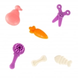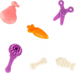 Vybavení sady zahrnuje hračkové kadeřnické příslušenství a hračkové krmivo, jako jsou misky, šunka, kost, rybka a mrkev. Všechny části jsou vyrobeny z bezpečného plastu a určeny pro děti nad tři roky.