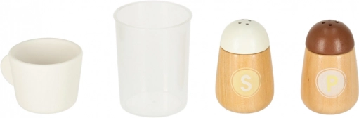- Hrnec s poklicí, pánev, 3× kuchyňské náčiní, hrnek, solnička, pepřenka, houbička, utěrka