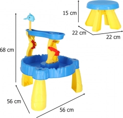 Hrací stolek 2v1 s fontánou je ideální pro zábavu doma i na pláži. Díky jednoduché montáži je okamžitě připraven k užití. Hračka podporuje smyslovou a motorickou integraci dětí.