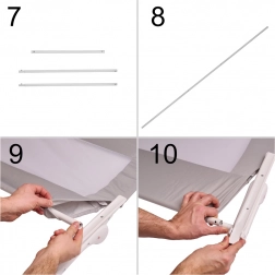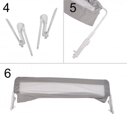 Praktická ochrana zabezpečuje proti nechtěnému pádu, přitom zajišťuje komfort a bezpečí pro všechny členy domácnosti. Montáž je velmi snadná – stačí složit rám, zasunout ho do textilního obšití sítě a umístit podložky pod matraci.