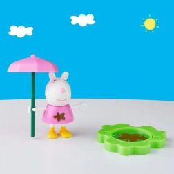 Tato figurka Prasátka Peppy přináší nekonečnou zábavu pro děti. S touto sadou si mohou hrát na dobrodružství v louži a blátě, což je perfektní pro malé fanoušky seriálu. Každé balení obsahuje potřebné doplňky jako stojánek, slunečník a deštník.
