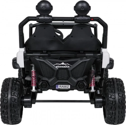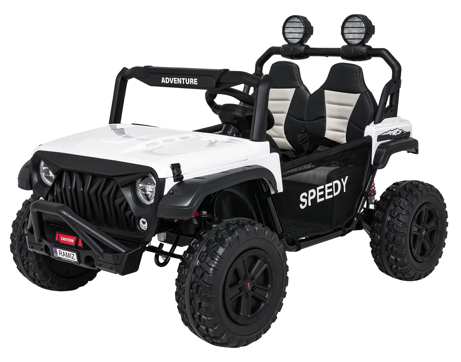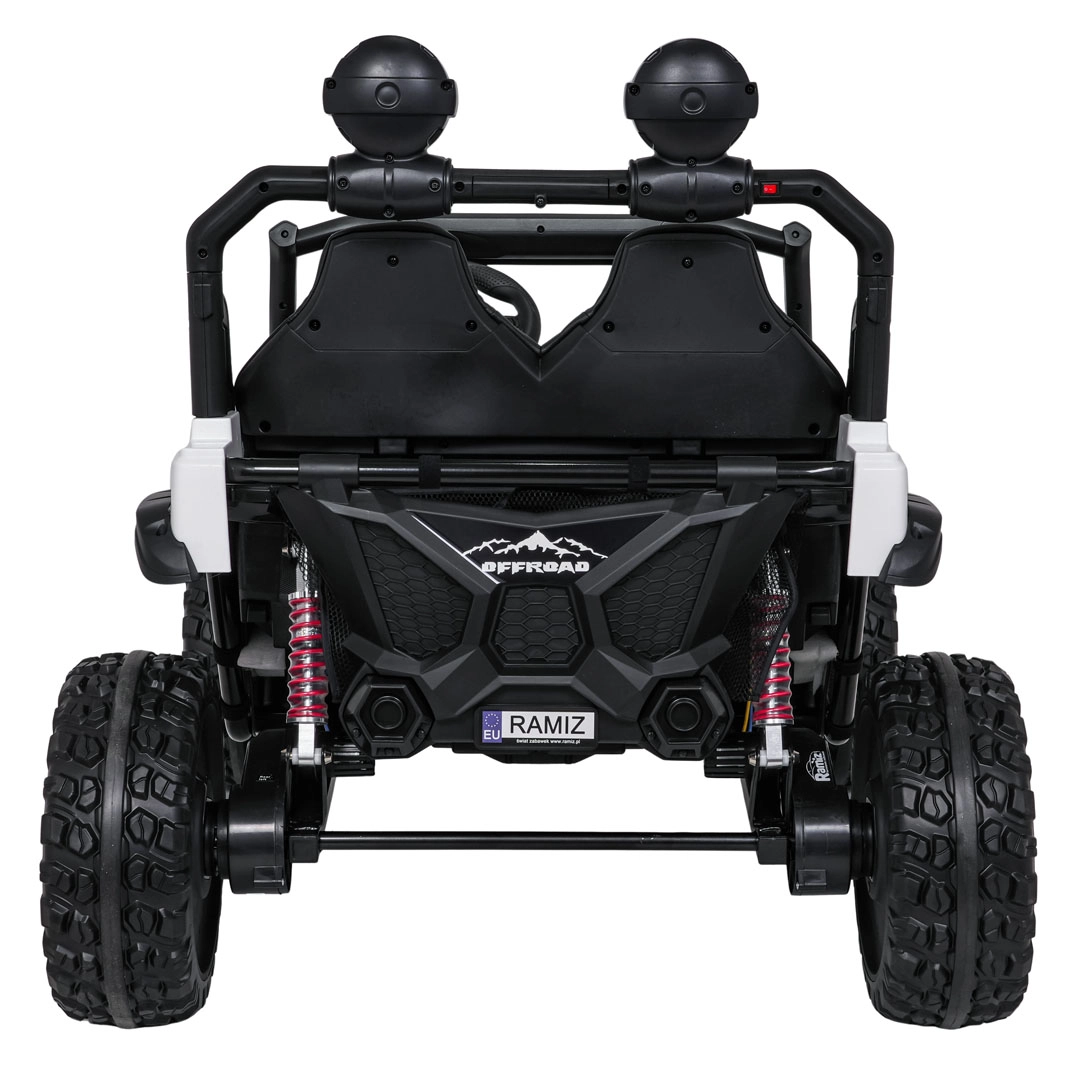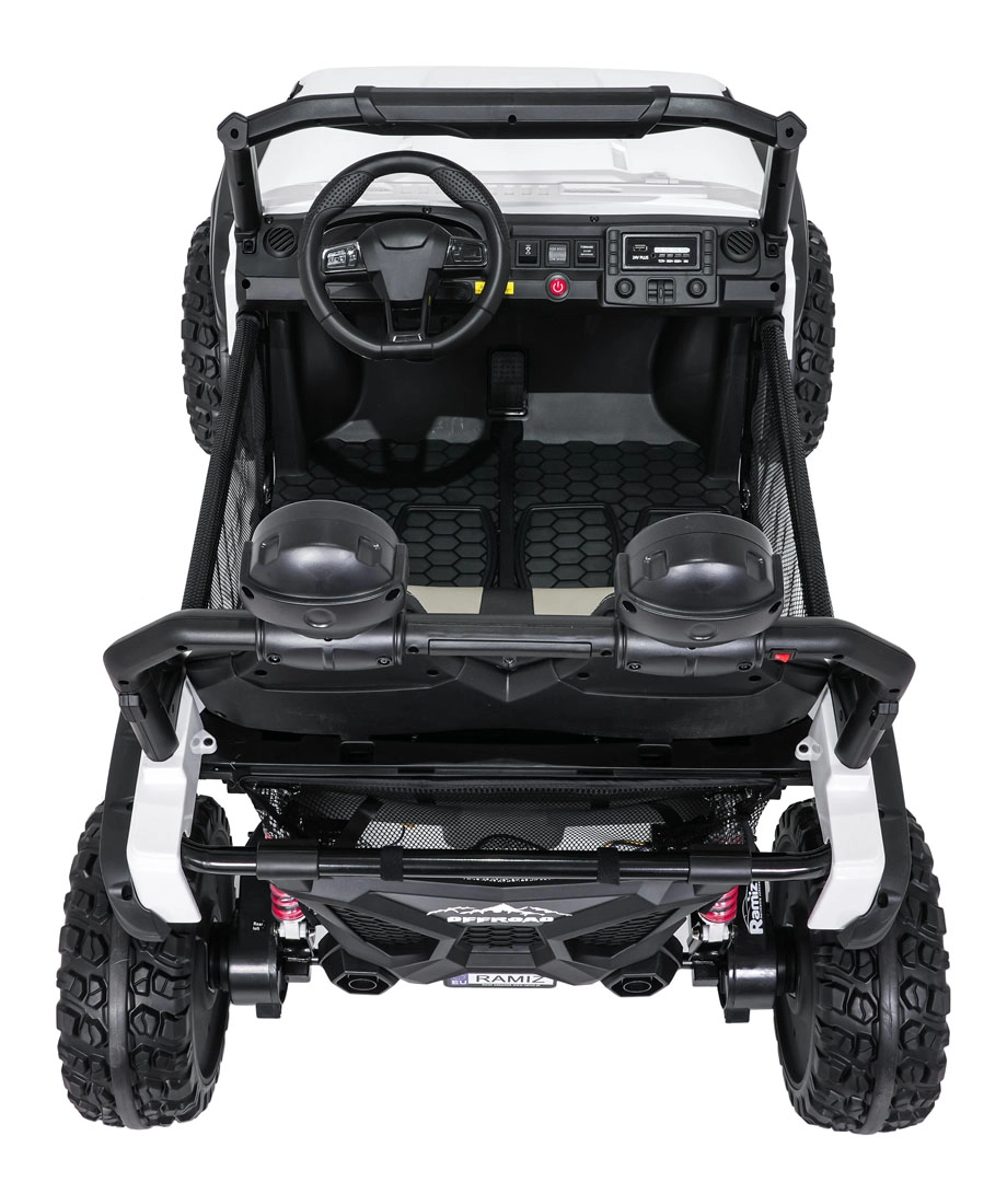 Robustní dětské elektrické auto do terénu PASSION 4x4 nabízí 4 motory 200 W, baterii 24 V, pěnová kola EVA a dvoumístné sedadlo z ekokůže s pásy. Díky LED osvětlení, plynulému rozjezdu a dálkovému ovladači 2,4 GHz s bezpečnostním tlačítkem Stop je jízda zábavná i bezpečná.