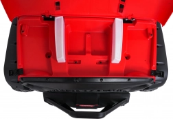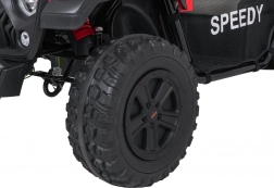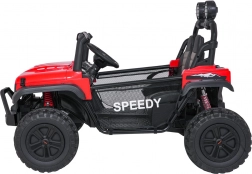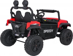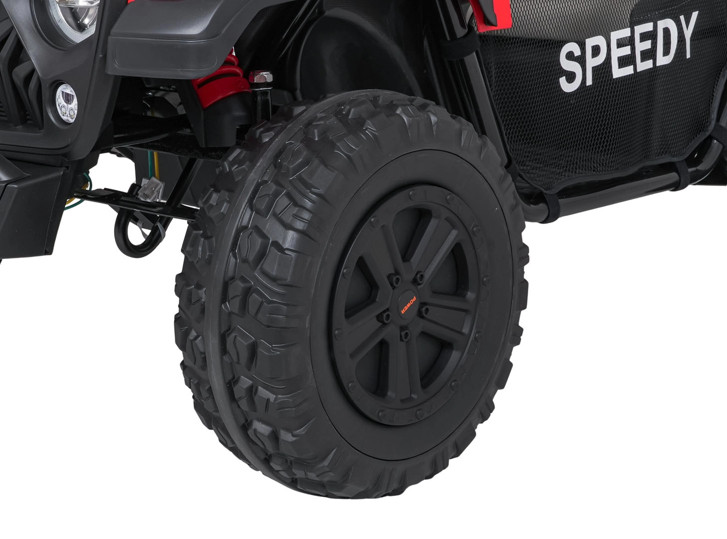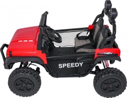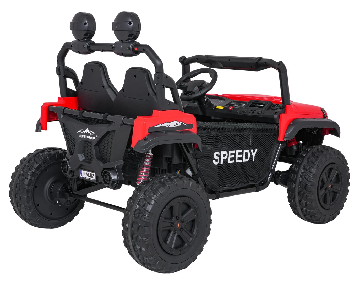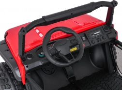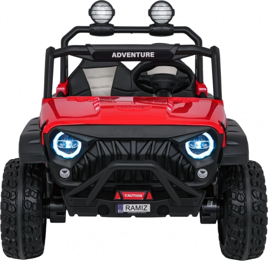 Malé řidiče potěší bohatá výbava: LED světla vpředu, podsvícená kapota a příprava pro horní světelný rám, přehledný indikátor stavu baterie a multimediální panel s Bluetooth, USB, AUX a MP3. Dvě sedadla z ekokůže s bezpečnostními pásy nabízejí prostor 52×21×32 cm pro pohodlné spolujezdce, zadní úložný box 49×10×16 cm se hodí na hračky či drobnosti.