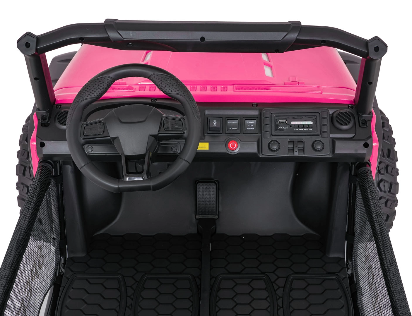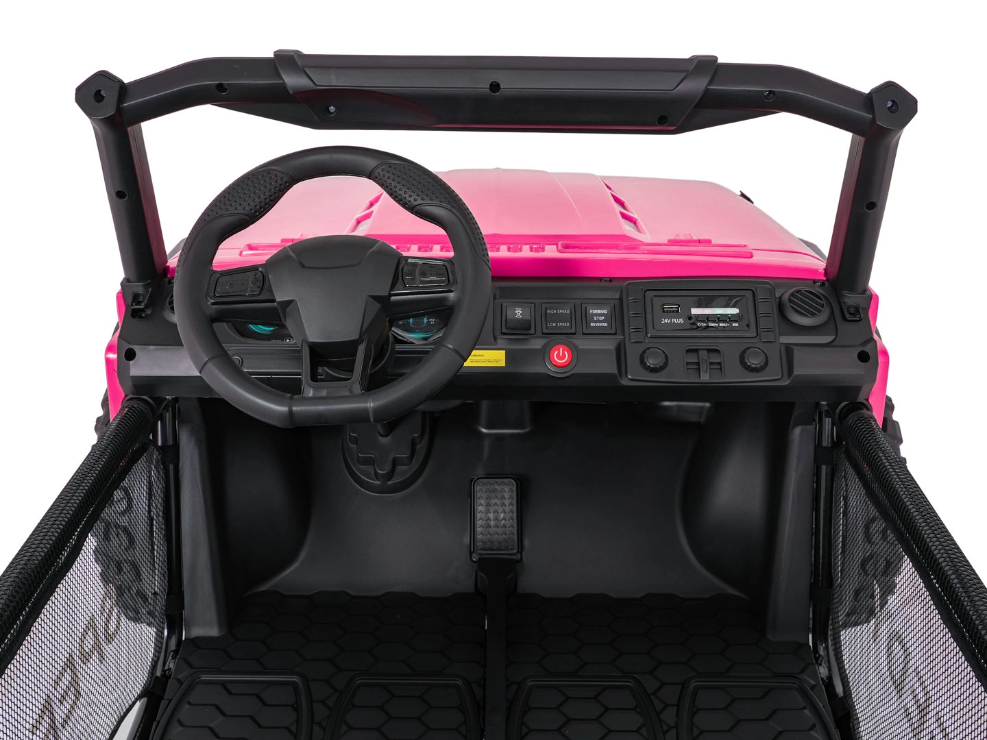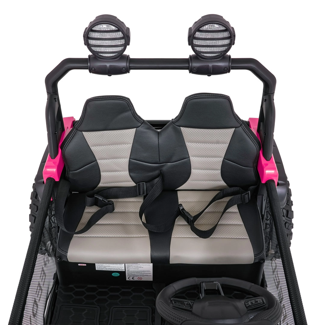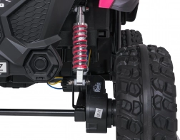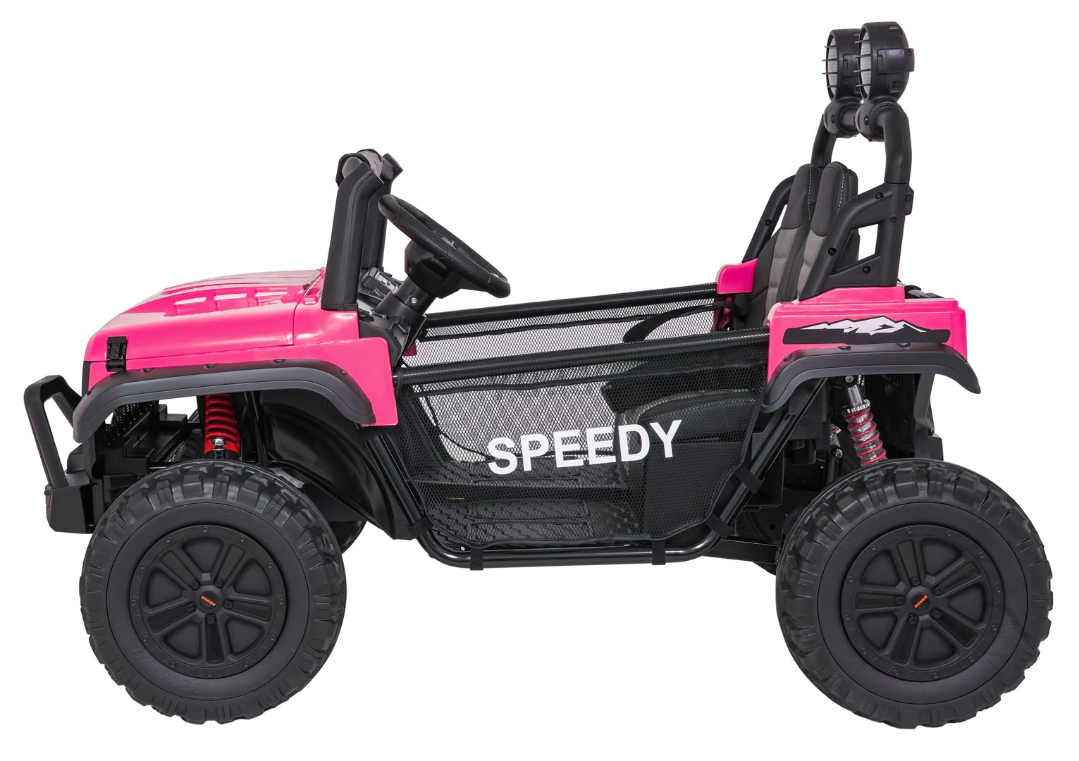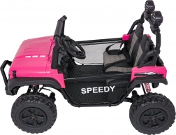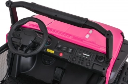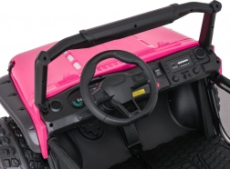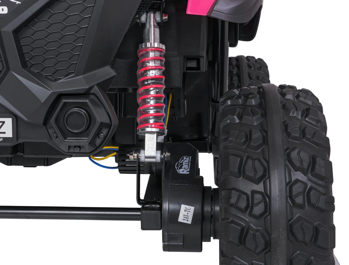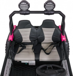 Růžové PASSION 4x4 je robustní terénní autíčko pro děti, které kombinuje silný výkon, vysoký komfort a bezpečnost. Čtyři motory 200 W si poradí s nerovnostmi, nastavitelné zadní tlumiče zlepší stabilitu a velká EVA kola 31 × 12 cm tiše a jistě drží stopu na různých površích. Dvoumístné sedadlo z ekokůže s bezpečnostními pásy zajistí pohodlí i na delších vyjížďkách.