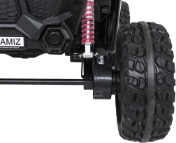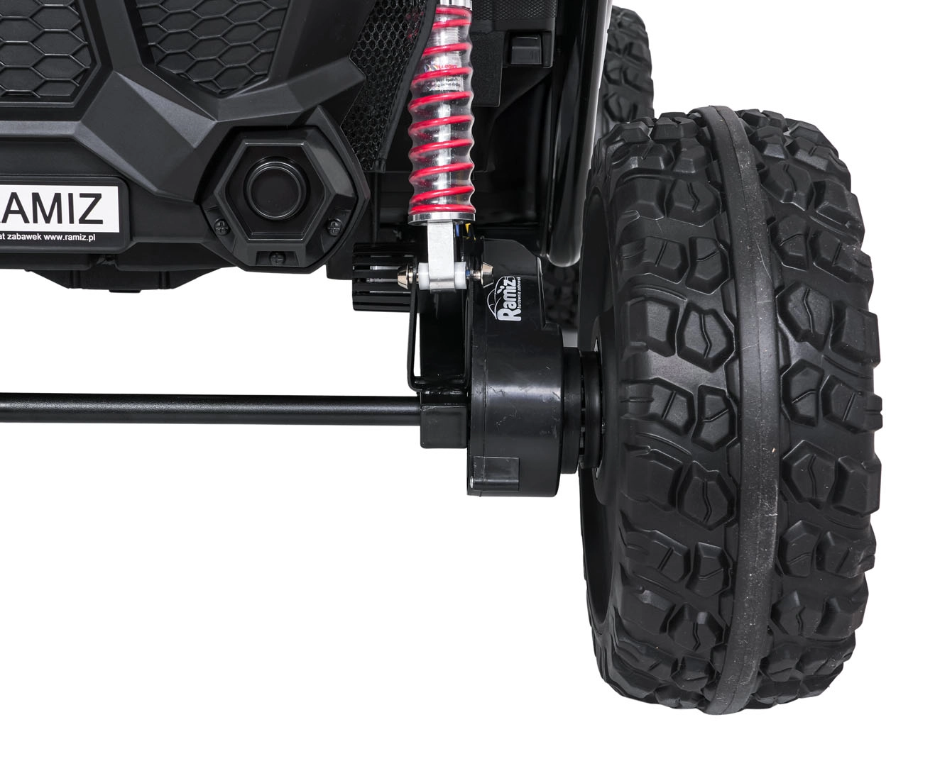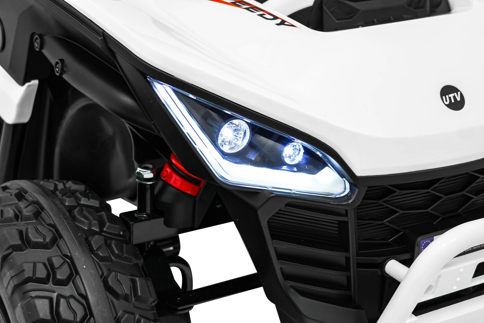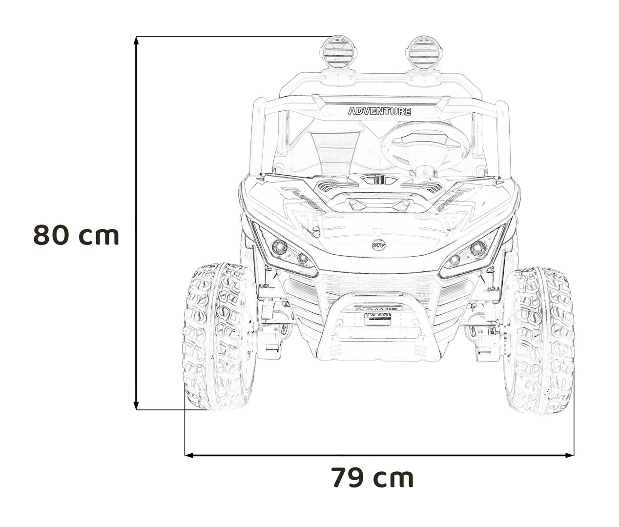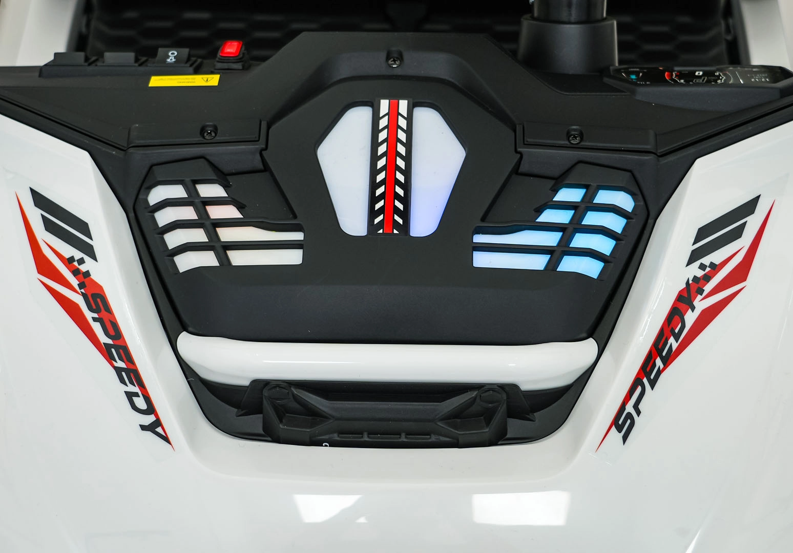 Tato robustní dětská buggy SPEEDY přináší skutečné off-road dobrodružství. Čtyři silné motory 4×200 W napájené sadou 24 V (2×12 V 10 Ah) zajišťují plynulý rozjezd, dvě rychlosti a jízdu vpřed/vzad. Velká pěnová kola EVA (31×12 cm) společně se zadními nastavitelnými tlumiči a vysokým světlým podvozkem poskytují stabilitu, přilnavost a komfort na nerovnostech.