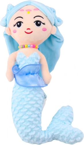 Tato hračka má vyšívaný obličej s jemným úsměvem, drobnými ozdobami na čele a dlouhými modrými vlasy se zdobenou čelenkou. Ozvláštňuje ji baret z barevných korálků a textilní volán na pasu, který ladí se stylem mořské panny.